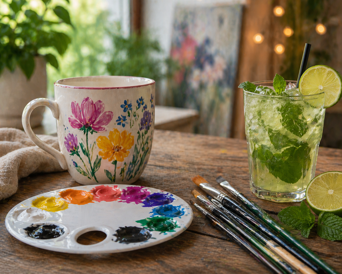 Kreiere dein Kunstwerk auf Glas oder Porzellan und genieße dabei Cocktails deiner Wahl! Vor Ort kannst du deinen Lieblingsrohling auswählen wie z.B. eine Tasse, einen Dekoteller oder eine Vase.